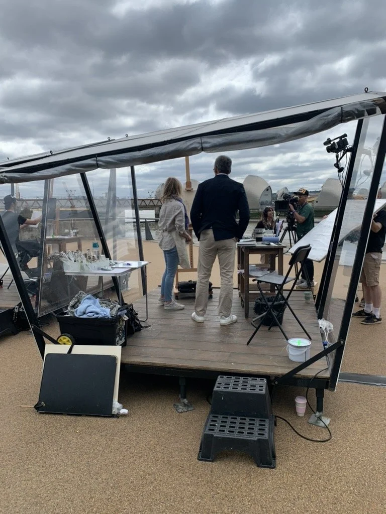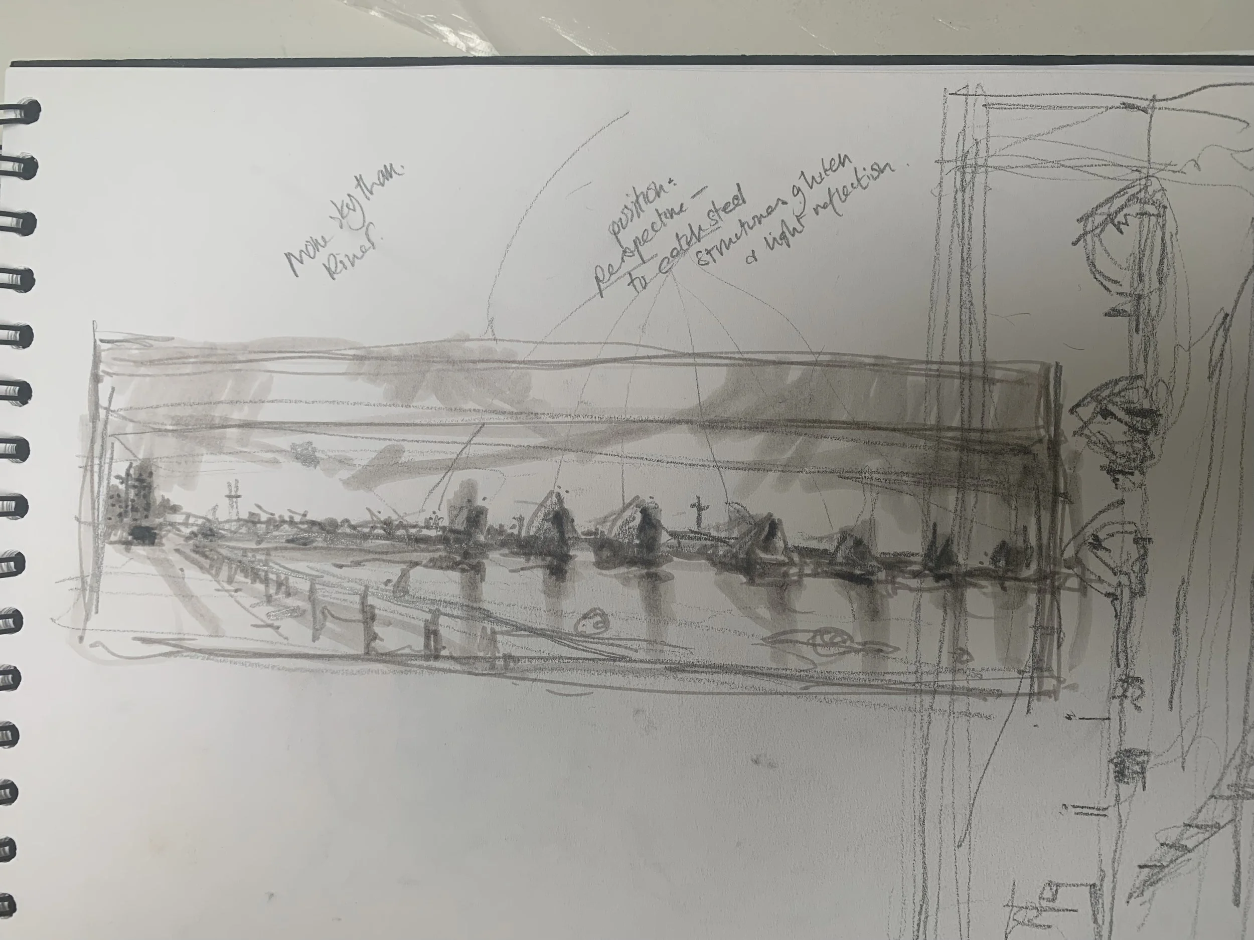 There is an ‘audacious boldness’ in this intent, with the barriers appearing to openly ‘challenge the birth-right of the Thames’ to exist on its own terms as it has done throughout history. As a painter, I felt it was important to try and capture that context which meant choosing a composition that reflected how the barriers sit within the landscape of the Thames and the riverbank given their immense scale played out as part of that impudent endeavour.